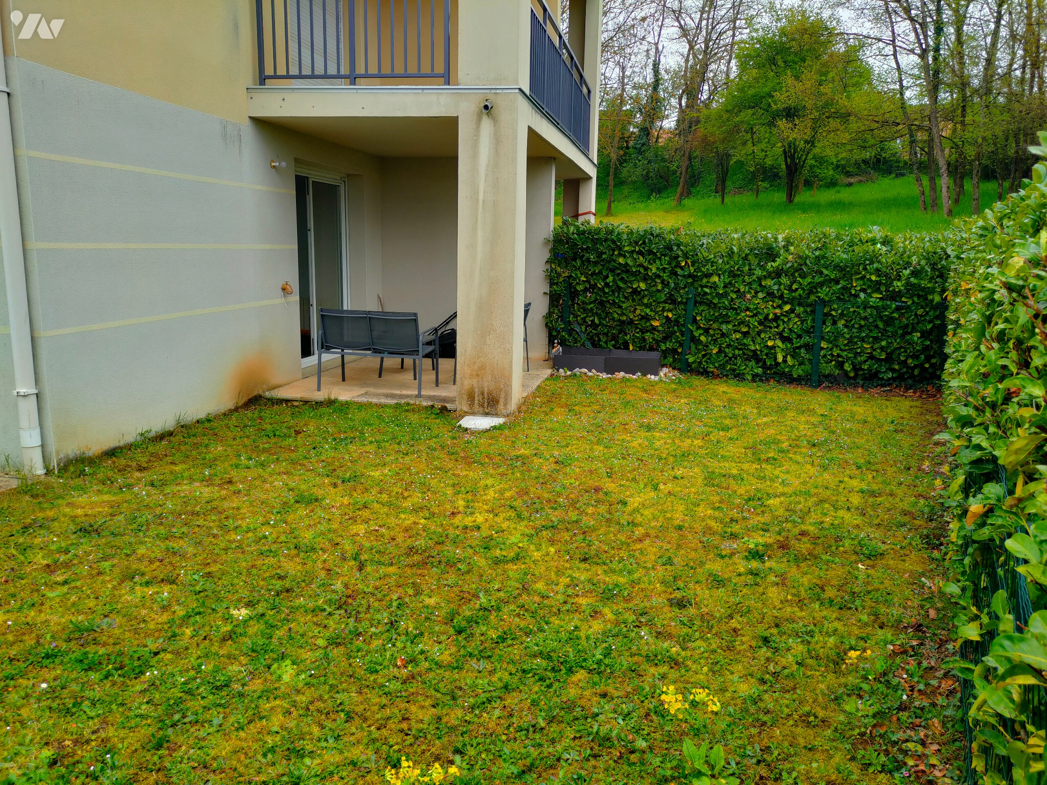 VAULX MILIEU- Résidence sécurisée - Un appartement meublé de type 2 situé en rez-de-jardin comprenant : séjour/cuisine, une chambre, une salle de bains- WC, un jardin de 66 M² et une terrasse de 7,55 M².